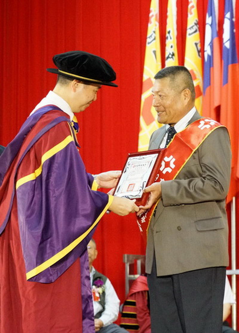 • 育達科技大學王育文董事長於畢業典禮頒獎表揚唐時聰理事長榮膺109年度傑出校友.jpg育達科技大學王育文董事長...
